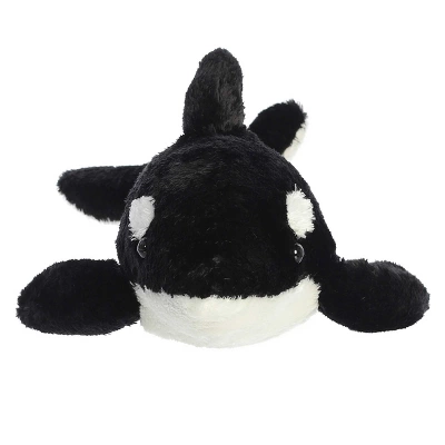Auroras Flopsie collection styles your favorite animal companions in a resting position for added cuteness and ease when playing, cuddling, and more! This Splash Orca is all black with a white underside and white spots throughout. Bring home this orca plush for a unique and lovable addition to your collection.