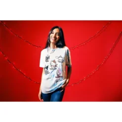 Hello Kitty & Friends Characters Skiing Women’s Blue Cloud Wash Crew Neck Short Sleeve T-shirt
