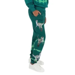 Jurassic Park Puff Print Logo & Velociraptors Adult Green Tie-Dye Sweatpants