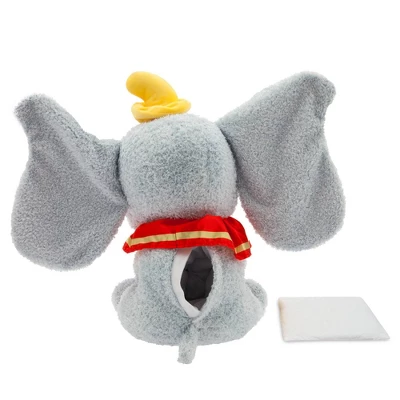 Ears looking at you! Our adorable fluffy Dumbo provides endless relaxation for you at home and beyond with a removable 2 1/2 pound weighted pouch! Costumed in his circus clown hat and collar, this soft, huggable baby elephant will send hearts soaring! Soft, fluffy plush sculpturing with embroidered details. Genuine, Original, Authentic Disney Store Product.