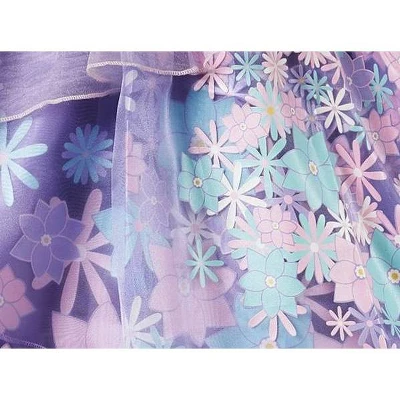 Become the official flower girl of your masquerade celebration with this lovely Isabel dress inspired by Disney’s Encanto. Ruffled tiers and floral decoration will have them talking about Isabel (if not Bruno). Authentic Disney Costume. One-piece dress. Ruffled organza and mesh layers at collar, sleeves, and waist. Floral detailing. Flower brooch with ”pearl” center. Satin underskirt and collar. Sheer tiered overskirts. Self-stick fabric closure at back. Inspired by Disney’s Encanto (2021). Genuine, Original, Authentic Disney Store Product.