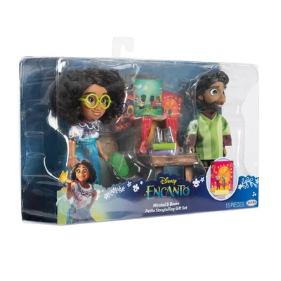 Play out your favorite story moment from Disneyâs Encanto with the Mirabel & Bruno Petite Storytelling Gift Set! Join Mirabel on her adventure to save her familyâs magic, and discover her mysterious Tio Bruno hiding within the walls of the casa! With this amazing set, you can recreate their hilarious movie scenes and play out your favorite story moments. Set the stage with Brunoâs rat friends, and add in different TV backdrops, just like in the movie! Mirabel and Bruno are dressed in their signature fashions. Mirabel comes complete with her glasses, espadrille sandals, and the vision puzzle piece from the film! With the Mirabel and Bruno Petite Storytelling Gift Set, youâll have hours of fun playing out exciting scenes from Disneyâs Encanto!