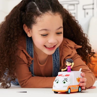 Team up with your best Disney Junior Firebud friends, Violet and Axl, as they race from one exciting rescue mission to another! When thereâs trouble in Motopolis, place Violet on top of Axlâs roof and push down to activate Axlâs eye movement! Watch as Axl looks up to greet his favorite Vroom-Mate! Then, push Axl along as you save the day over and over again! Violet & Axl are also compatible with the Headquarters playsetâs dual launcher system and use VROOMLINK technology to activate exciting sounds effects in the HQ! For even more awesome adventures, collect all the Disney Firebuds preschool toys, like the HQ playset and the toy figures and vehicle sets like Bo, Jayden, and Violet, along with their trusty vehicle vroom-mates: Flash – the fire truck toy, Piston â the police car toy, and Axl – the heroic ambulance toy (Each sold separately)! Firebuds toy cars, action figures and playsets are great kids toys for boys and girls ages 3 and up! They are also the perfect gifts for kids that love using their imagination to create pretend play adventures, while building their fine motor skills! Bring home the excitement from the new Disney Junior series with the Firebuds Figure and Vehicle Set! Includes: 1 Firebuds Figure, 1 Firebuds Vehicle