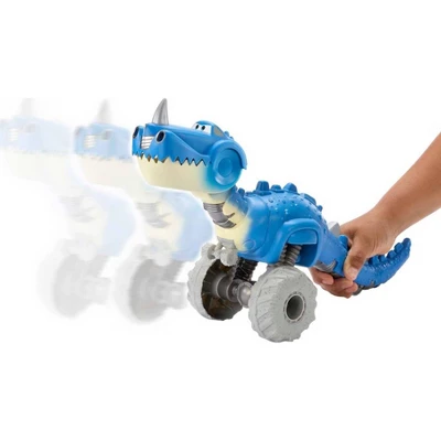 Disney and Pixar Cars fans can roar into prehistoric playtime with this car-chomping dinosaur vehicle inspired by its onscreen character in the Disney+ series Cars on the Road. This 17-inch dino character has rolling wheels and a fun biting feature so kids and chase and chew at their collection of 1:55 scale cars (sold separately). Grab the tail to steer or push a button to activate the chomping action. Kids and Cars fan ages 3 years old and up can engage their imaginations in all-day play and can collect other vehicles and playsets to expand the world (each sold separately, subject to availability). Colors and decorations may vary.