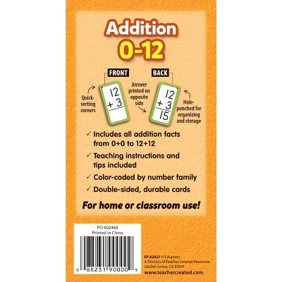 Edupress Addition Flash Cards – All Facts 0-12 | Teach and review addition facts individually, in groups, or with the whole class! Each flash card set contains a collection of full-color, high-interest student cards as well as instructions and tips for the teacher or parent, suggested activities, and additional blank cards. Each card has a hole in the top corner that can be fit with a ring or string to help with organization and storage. Additionally, each card has one corner that is shaped differently than the others. By lining up the non-rounded corners, the flash cards can quickly be faced in the same direction. When applicable, flash card sets include answers in small print on the reverse side of each card. Each card measures 3-1/8″ x 5-1/8″. Each set includes 170 double-sided cards.