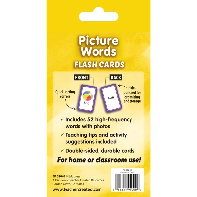 Edupress Picture Words Flash Cards | Teach and review picture words individually, in groups, or with the whole class! Each flash card set contains a collection of full-color, high-interest student cards as well as instructions and tips for the teacher or parent, suggested activities, and additional blank cards. Each card has a hole in the top corner that can be fit with a ring or string to help with organization and storage. Additionally, each card has one corner that is shaped differently than the others. By lining up the non-rounded corners, the flash cards can quickly be faced in the same direction. When applicable, flash card sets include answers in small print on the reverse side of each card. Each card measures 3-1/8″ x 5-1/8″. Each set includes 56 double-sided cards.