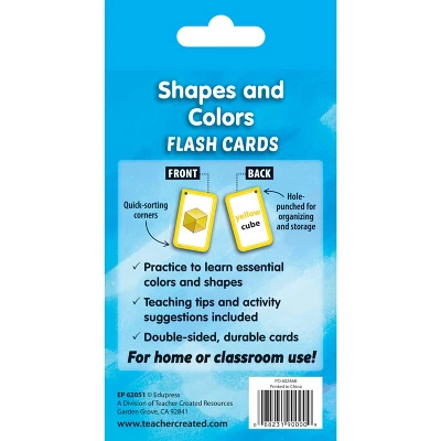Teach and review shapes and colors individually, in groups, or with the whole class! Each flash card set contains a collection of full-color, high-interest student cards as well as instructions and tips for the teacher or parent, suggested activities, and additional blank cards. Each card has a hole in the top corner that can be fit with a ring or string to help with organization and storage. Additionally, each card has one corner that is shaped differently than the others. By lining up the non-rounded corners, the flash cards can quickly be faced in the same direction. When applicable, flash card sets include answers in small print on the reverse side of each card. Each card measures 3-1/8″ x 5-1/8″. Each set includes 56 double-sided cards.