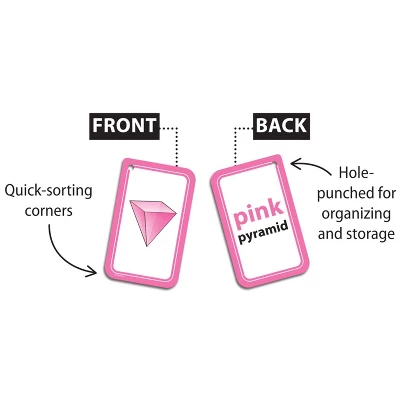 - Each card has a hole in the top corner that can be fit with a ring or string to help with organization and storage