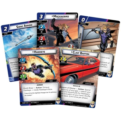 - Two new heroes, Hawkeye and Spider-Woman, enter the game with fully pre-built and ready-to-play decks.