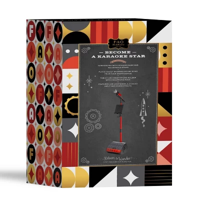 The FAO Schwarz Stage Stars Karaoke Mic & Stand appeals to singers and approving parents thanks to the kid-friendly design, safe and easy to use versatility, and premium construction. Itâs jam-packed with exciting features thatâs sure to keep them entertained for hours! The compact design can easily be stored in cars or suitcases when traveling and the battery power allows you to perform an impromptu concert anywhere your heart desires. This charming stage mic comes equipped with an adjustable stand and built-in 5 track playlist so you’ll always have something to get the crowd going! The external audio input jack lets your hook-up your smartphone, tablet, or other electronic device to connect to your childâs favorite artists and singalong to popular tunes! Your kid will feel like a superstar with the flashing LED lights and fun voice effects that brings the performance to life!