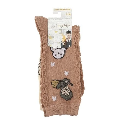 Step into the magic of Hogwarts with these women’s Harry Potter casual crew socks. This pair features one sock in brown with chibi images of Harry on a broom and Hedwig, while the other sock comes in tan with chibi images of Ron and Hermione riding brooms. Made from a blend of 98% polyester and 2% spandex with cable knitting detail, these socks provide a comfortable and cozy fit. They fit sock size 9-11 and shoe size 5-10. Machine wash these socks on cold with like colors and tumble dry on low heat for simple care. Do not bleach to preserve the designs.
