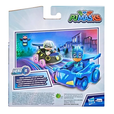 The PJ Masks Catboy vs. Luna Girl racers are ready to roll! This awesome vehicle and figure set comes with 2 mini PJ Masks cars and 2 articulating PJ Masks action figures, so kids can pit the Catboy figure and his Cat-Car vehicle and the Luna Girl figure and her vehicle against each other in epic races. Figures can sit in the vehicles, allowing preschoolers to recreate their favorite scenes from entertainment or imagine new adventures of their own! Figures are compatible with Hasbro Hero ID-equipped PJ Masks playsets (each sold separately, subject to availability), which recognize and react to 3-inch PJ Masks figures with lights, sounds, or both. This PJ Masks toy makes an awesome gift for girls and boys ages 3 and up who love the world of Catboy, Owlette, and Gekko. With the Catboy vs. Luna Girl racers, fun is always along for the ride.