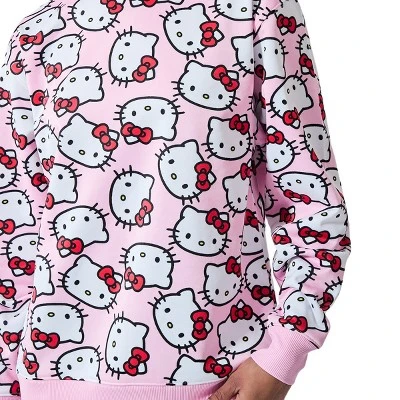 Celebrate the charm of your favorite characters with this women’s pink Hello Kitty crew neck long sleeve sweatshirt featuring all-over print of Hello Kitty character heads. ade from cozy 100% polyester fleece, this sweatshirt offers comfort and style. For simple care, machine wash it on cold with like colors and tumble dry on low heat.