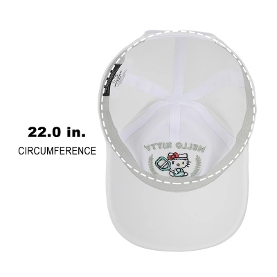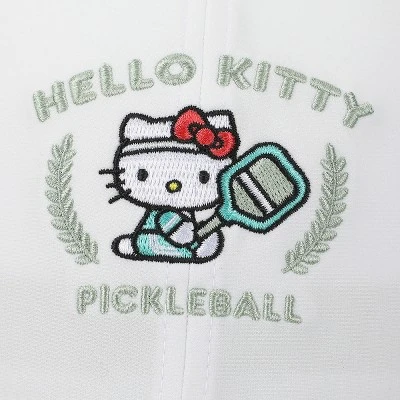 Show off your love for pickleball with this white Hello Kitty elite flex unstructured baseball cap. Featuring an adorable image of Hello Kitty with a racket and surrounded by green text that reads “Hello Kitty Pickleball,” this cap combines playful design with functionality. Made from soft cotton, it includes an adjustable strap for a perfect fit and a moisture-wicking sweatband to keep you comfortable during active play. For optimal care, hand wash it in cold water and lay it flat to dry.