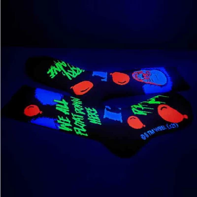 Show some love for your favorite scary movies with these It athletic crew socks. The socks come in black and feature an image of Pennywise the Clown surrounded by red balloons while blue text reads, “Derry, Maine, We All Float Down Here.” The socks are made with a blend of polyester and spandex to help you stay comfy and cozy. Celebrate your favorite horror movies in style with these comfy crew socks.