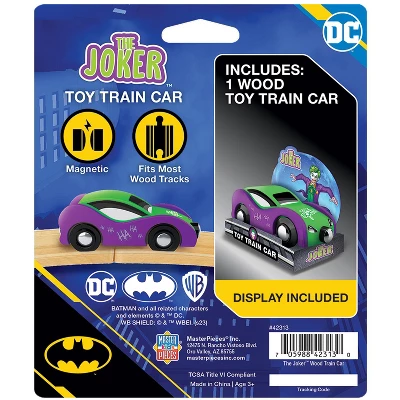 This magnetic Officially licensed Joker train engine is compatible with most 1″ wooden train tracks (track not included), and is the perfect gift for all kids with a big imagination! Gather family and friends to enjoy this detailed, wood version of The Joker train engine.This Joker car train engine is a great addition to any wooden train track. It’s compatible with most 1″ tracks, and even has a little magnet to hold it in place on the track. This train is made of wood, so it’s durable and looks great. It’s sure to be a hit with any child who loves trains, DC comics, or The Joker!
