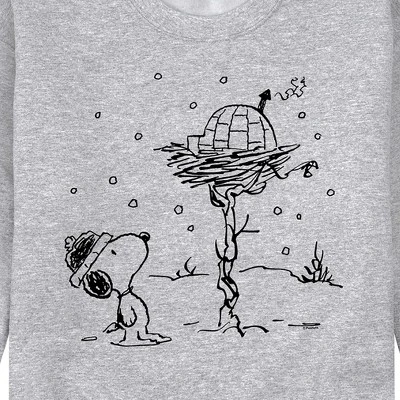 Peanuts – Snoopy Woodstock Igloo – Men’s Crew Neck Fleece Pullover – From the best-loved comic strip in history comes officially licensed PEANUTS apparel for fans everywhere. Show your love for Charlie Brown, Snoopy, Woodstock, Lucy, Linus, Pigpen and the whole gang. Copyright Peanuts.