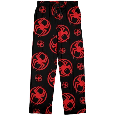 - CUSTOM DESIGN: Miles Morales’ red spider logo repeats in different sizes across the black background of these men’s sleep pajama pants. This sleepwear makes a great gift for fans of Harlem’s friendly neighborhood Spider-Man.