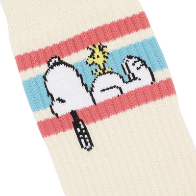 Step into style and comfort with these Bioworld Peanuts socks. Featuring knitted logo cushioned foot bed, arch compression for support, they add standout flair to your everyday wear. Crafted from 98% Polyester, 2% Spandex, these socks provide a flexible, durable fit. Easy to care for, simply machine wash cold with like colors. do not bleach. tumble dry with low heat..