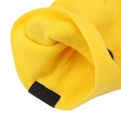 Stay warm and show off your love for Pokémon with this yellow cuffless beanie featuring a big embroidered graphic of Pikachu’s face on the front. Complete with 3D ears, this beanie is both playful and practical. Made from acrylic yarn, it’s designed to fit most head sizes comfortably. For the best care, hand wash this beanie in cold water and lay flat to dry to keep the Pikachu design intact.