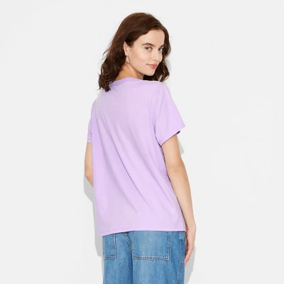 Add this Women’s My Melody and Kuromi Short Sleeve Graphic T-Shirt in Purple to your casual wear collection. Featuring a purple color along with fun graphics on the front, this t-shirt gives a free and easy vibe with the regular fit. Designed with round neckline, basic sleeve and pullover style, this t-shirt is made from a blend of lightweight fabric feeling comfortable against your skin and you can pair this t-shirt with your favorite pair of jeans for a perfectly relaxed look.