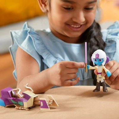 - LYS’S SPEEDER BIKE: This Star Wars vehicle pack also comes with a speeder bike featuring deco inspired by the show and wheels, so kids can roll right into adventure
