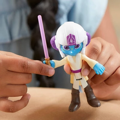 - LYS SOLAY ACTION FIGURE & ACCESSORY: Introduce young Jedi to the Star Wars Galaxy with this Lys Solay Star Wars toy figure, featuring a molded-on helmet and a purple Lightsaber accessory