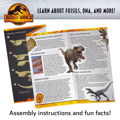 Discover where the dinosaurs in Jurassic World came from! With this STEM kit, you can play the part of a paleontologist on the hunt for evidence of these fascinating creatures that once roamed Earth. Use your special hammer and chisel tools to carefully excavate models of a fossilized T. rex skeleton, a mosquito encased in amber, and a figurine of Blue, the loveable velociraptor from Jurassic World. Assemble the T. rex skeleton and then put these specimens on permanent display in your own dinosaur exhibit. Learn about how fossils are formed, how DNA traces might be found in amber, and fun facts about each of the dinosaurs.