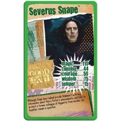 - HARRY POTTER AND THE DEATHLY HOLLOWS PART 1: Find out Harry Potter’s level of wisdom, Severus Snape’s level of magic and Draco Malfoy’s temper in this edition of Top Trumps!