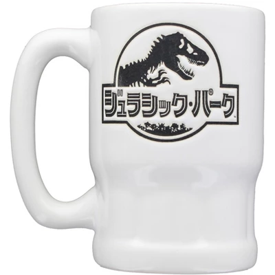 - FEATURES: A Jurassic Park mosquito in amber bottle opener, Japanese logo mini ceramic mug, and Tyrannosaurus Rex Logo Heavy Duty Ceramic Coaster.