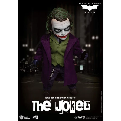 “Madness is like gravity. All you need is a little push.”——JokerIn memory of Heath Ledger’s seminal performance as the Joker in Christopher Nolan’s The Dark Knight, Beast Kingdom presents a new update on Gotham’s ‘Crime Prince of Darkness’ himself with the EAA-120. The EAA series of highly articulable 6-inch action figures under the Entertainment Experience Brand mixes stylized design and some serious attention to detail. The latest release of The EAA Joker from the Dark Knight, brings together real cloth fabric for all the clothing as well as two face sculpts and a large number of accessories in one complete package. ・Two (2) interchangeable face sculpts (Regular, smiling) ・Two (2) interchangeable hair・Four (4) pairs of replacement hands・Use of real cloth fabric: Purple Clown jacket, green vest, shirt, pants, socks・Accessories: Knife, Bomb remote controller・Special, branded figure base with bracket