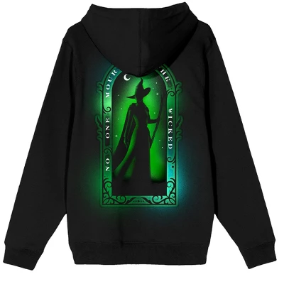 Step into the magical world of Oz with this women’s black Wicked Part One long sleeve hooded sweatshirt. Featuring a door frame design on the front and an image of Elphaba inside a green door frame on the back, this sweatshirt brings the essence of the story to life. The adjustable hood allows for a customizable fit, adding extra warmth and style. Crafted from a soft cotton and polyester blend, it offers warmth and style. For easy care, machine wash it on cold with like colors and tumble dry on low heat.