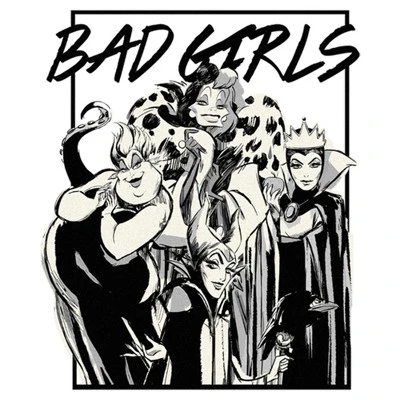 - Strut your stuff with this stylish new women’s relaxed fit t-shirt that is perfect for every occasion! Featuring sketched versions of Maleficent, Cruella de Vil, Evil Queen, and Ursula, along with the phrase: “Bad girls” printed above them.